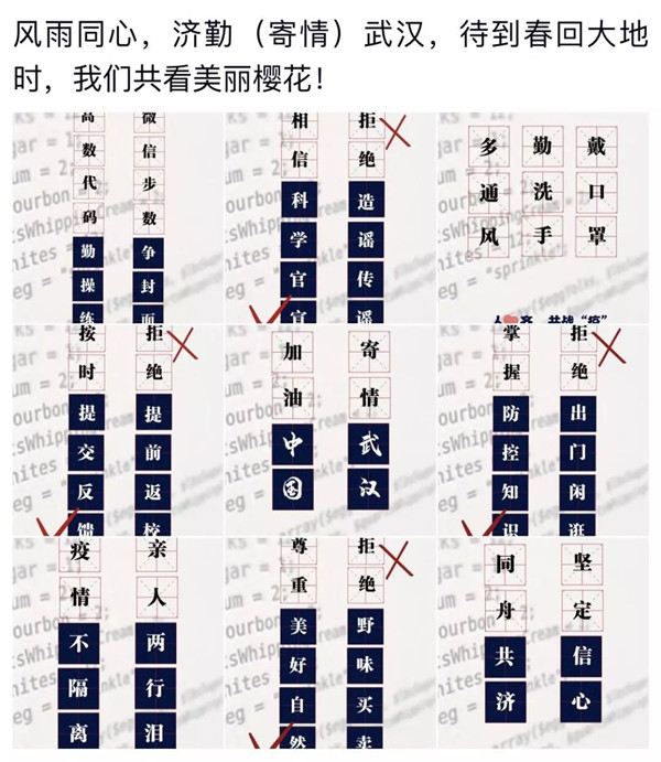 带领学生创作“我承诺”系列组图,以“风雨同舟,济勤(寄情)武汉”的倡议,得到学生的高度认可和主动刷屏。